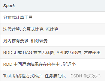 Spark Core 是整个Spark生态系统的核心组件,是一个分布式大数据处理框架。Spark Core提供了多种资源调度管理,通过内存计算、有向无环图(DAG)等机制保证分布式计算的快速,并引入了RDD 的抽象保证数据的高容错性,其重要特性描述如下: