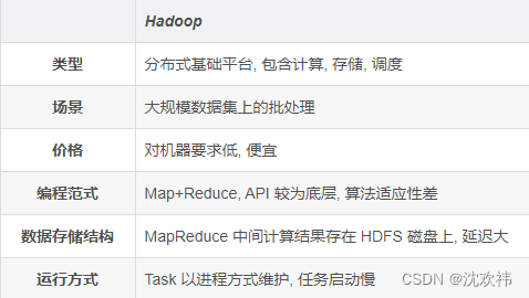 此外,Hadoop 可以使用廉价的、异构的机器来做分布式存储与计算,但是,Spark对硬件的要求稍高一些,对内存与 CPU 有一定的要求。