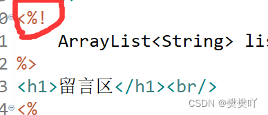 ArrayList<String> list = new ArrayList<String>();//定义一个全局的集合,注意%后一定有!,否则为局部变量,不能储存全部留言