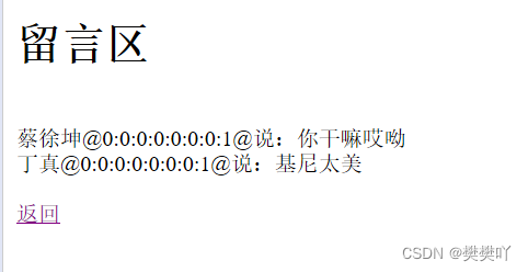 在这里定义一个List集合,就可以把每次留言的用户和内容都储存下来