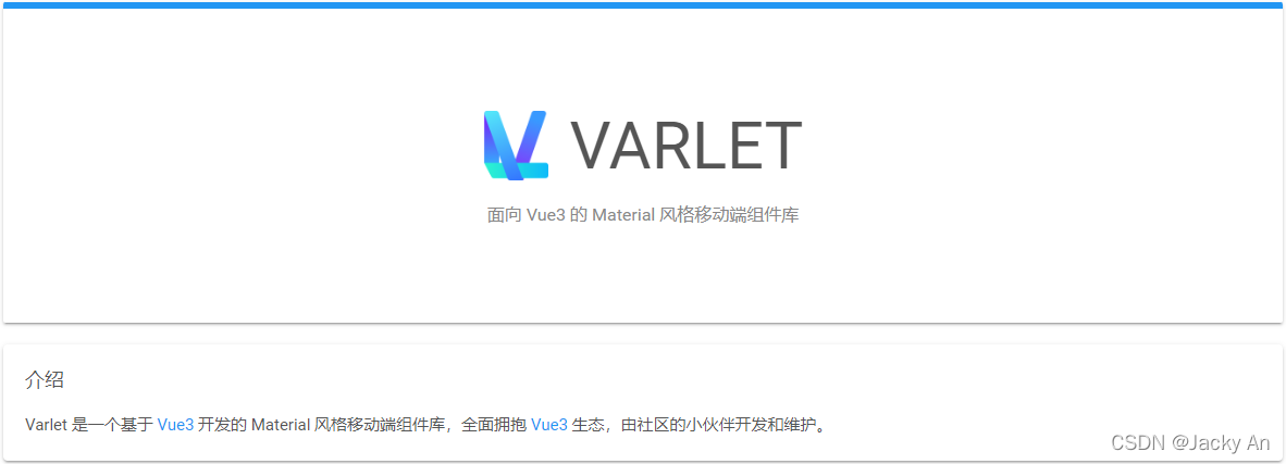 官网地址:面向 Vue3 的 Material 风格移动端组件库https://varlet-varletjs.vercel.app/#/zh-CN/home