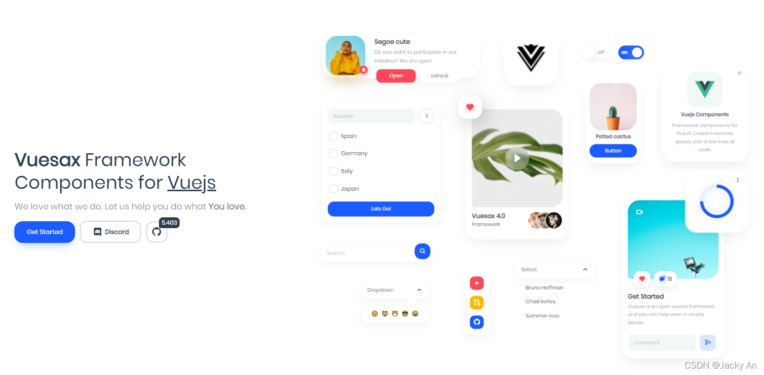 官网地址:Vue.js Framework Components - Vuesaxhttps://vuesax.com/