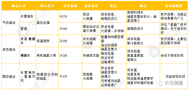 表2:三种氢储运比较 来源:火石创造根据公开资料整理