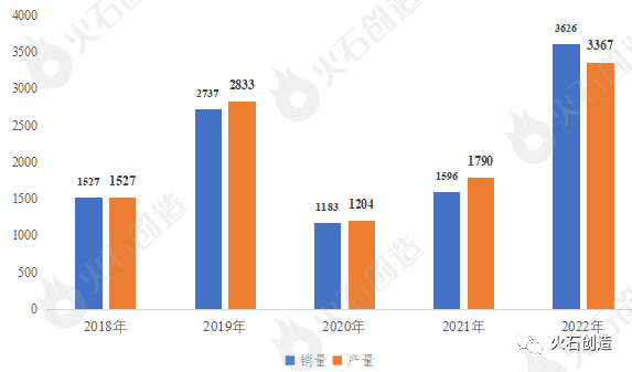 图5:2018年-2022年中国燃料电池汽车产销数量(辆)来源:火石创造根据公开资料整理