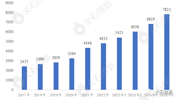 图2:2017年-2026年中国制氢产值规模及预测(单位:亿元)来源:火石创造根据公开资料整理