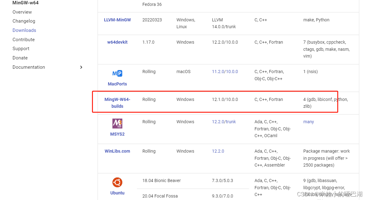 3. 向下滚动, 选择 mingw-w64-builds, 如下图: