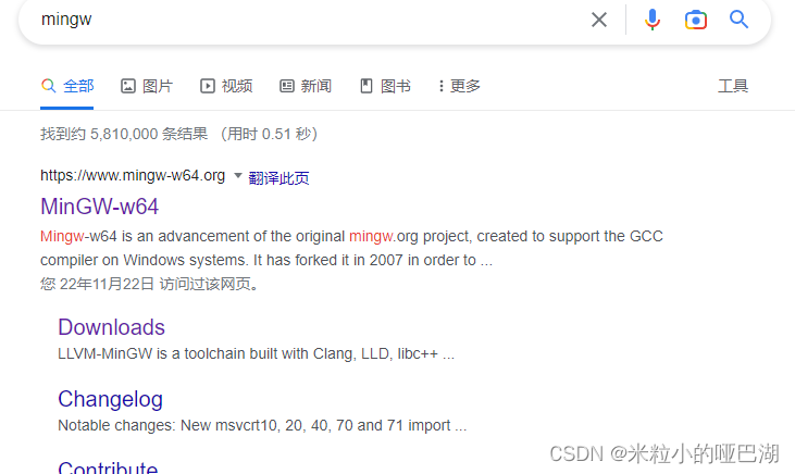 1. 需要有MinGW, 谷歌搜索MinGW, 点击Downloads,如图: