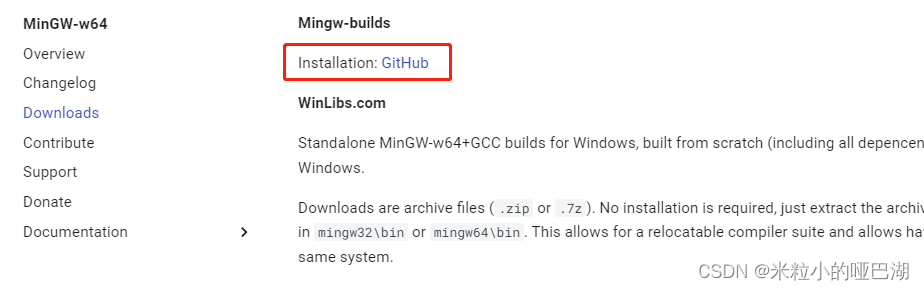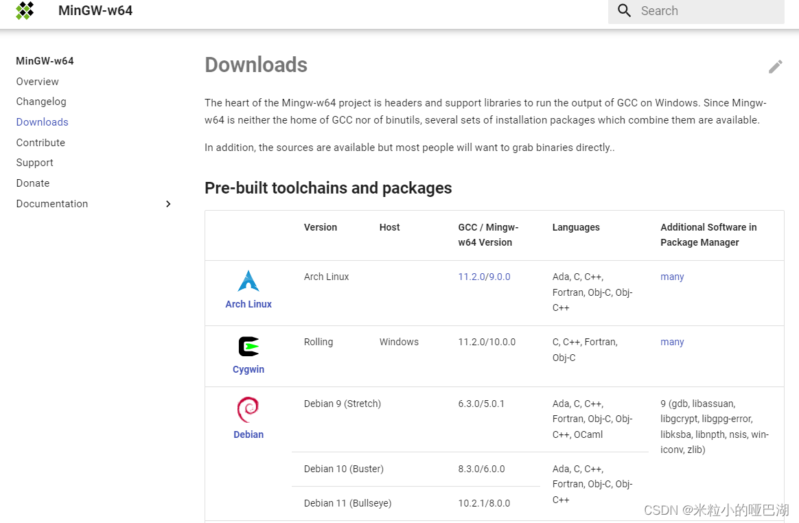 2. 进入网站: https://www.mingw-w64.org/downloads/, 如下图: