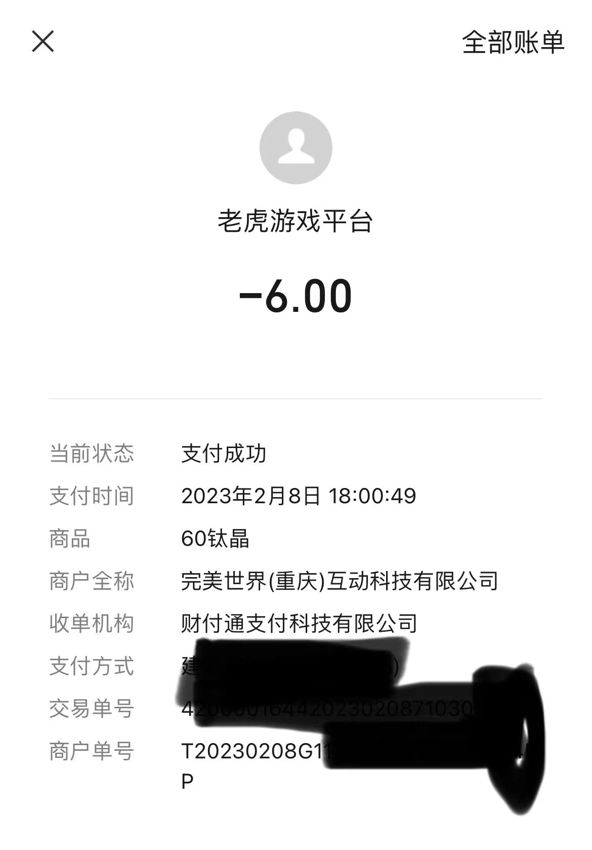 另一则在于,PC端用户的充值等行为无需和手游渠道进行分成,比如此次笔者在《幻塔》当中购买了6元的道具,钱款经由完美旗下的老虎游戏平台,直接充值到了完美世界(重庆)互动科技有限公司,而没有经过iOS平台的分成。
