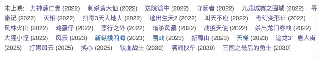 但疫情杀了古天乐一个措手不及。看一看古天乐的待映片单,就能明白他为什么会为《明日战记》“疯狂”。