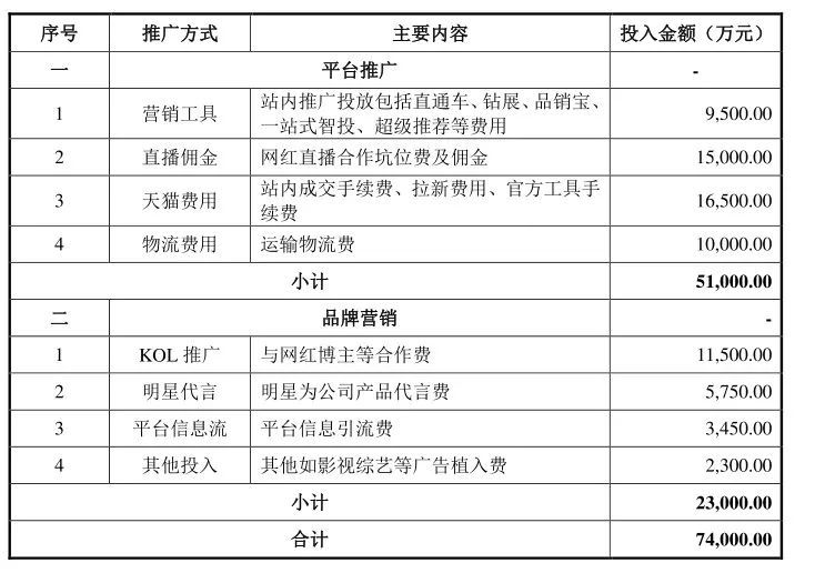 这里面付给天猫的包括拉新费用以及各种手续费是1.6亿,给网红直播的是1.5亿,还有1.1亿是给KOL的。