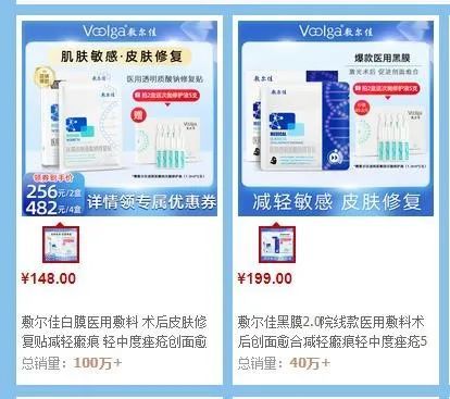 线上销量也在同一时期迅速与同类品牌可复美、创福康等拉开差距。