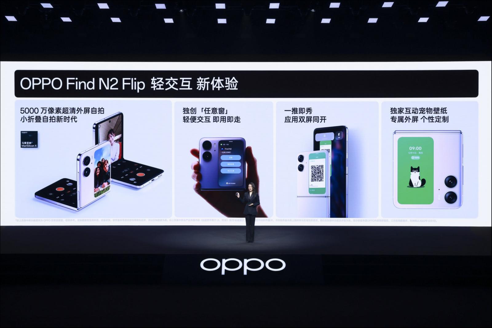 钛媒体App 12月15日消息,OPPO于今日正式发布全新一代折叠旗舰Find N2系列新机,其中包括仅有233克的横向折叠旗舰Find N2,以及首创3.26英寸外屏的竖向折叠产品Find N2 Flip。