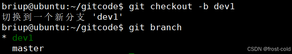 创建 dev1 分支并切换到此分支