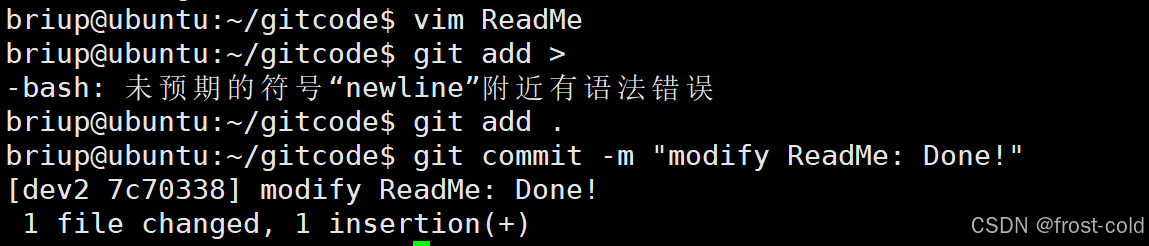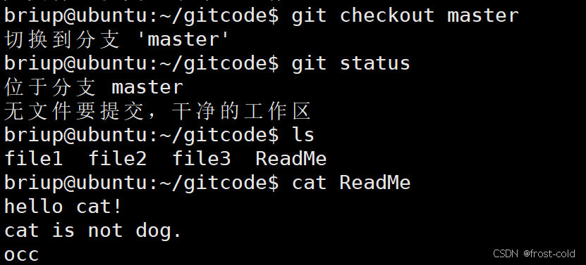 查看发现工作区没有修改要提交的,dev2 和 master 分支下的 ReadMe 文件也没有被修改。