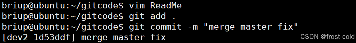然后再将 dev2 合并到 master 上