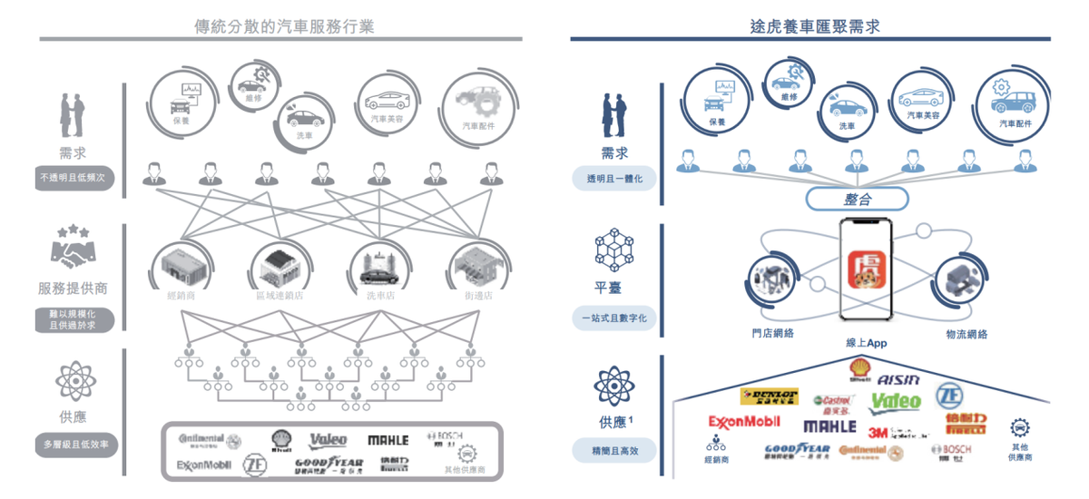 这牵涉到第二个问题,汽车服务市场参与者过多,但服务效率不足:授权经销商、电子商务龙头、传统设备制造商、加盟独立维修店、新汽车品牌搭建的自有服务网络。由于汽车服务高度依赖人工和供应链,比如零配件厂商,参与者过多导致大家都没有足够的订单优势、订单密度、议价能力。