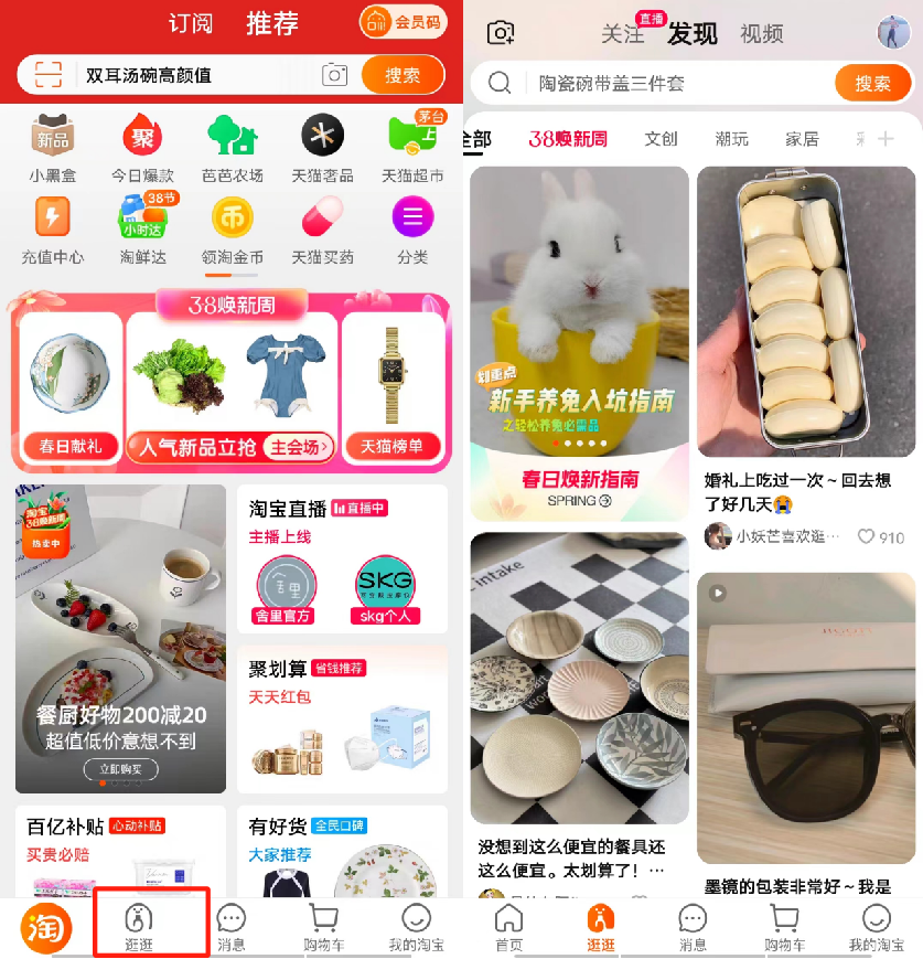 甚至为了抵挡小红书、抖快等内容平台,淘宝还构筑了“淘宝逛逛的图文+点淘的直播/短视频”的内容护城河,但依旧没有太大起色。