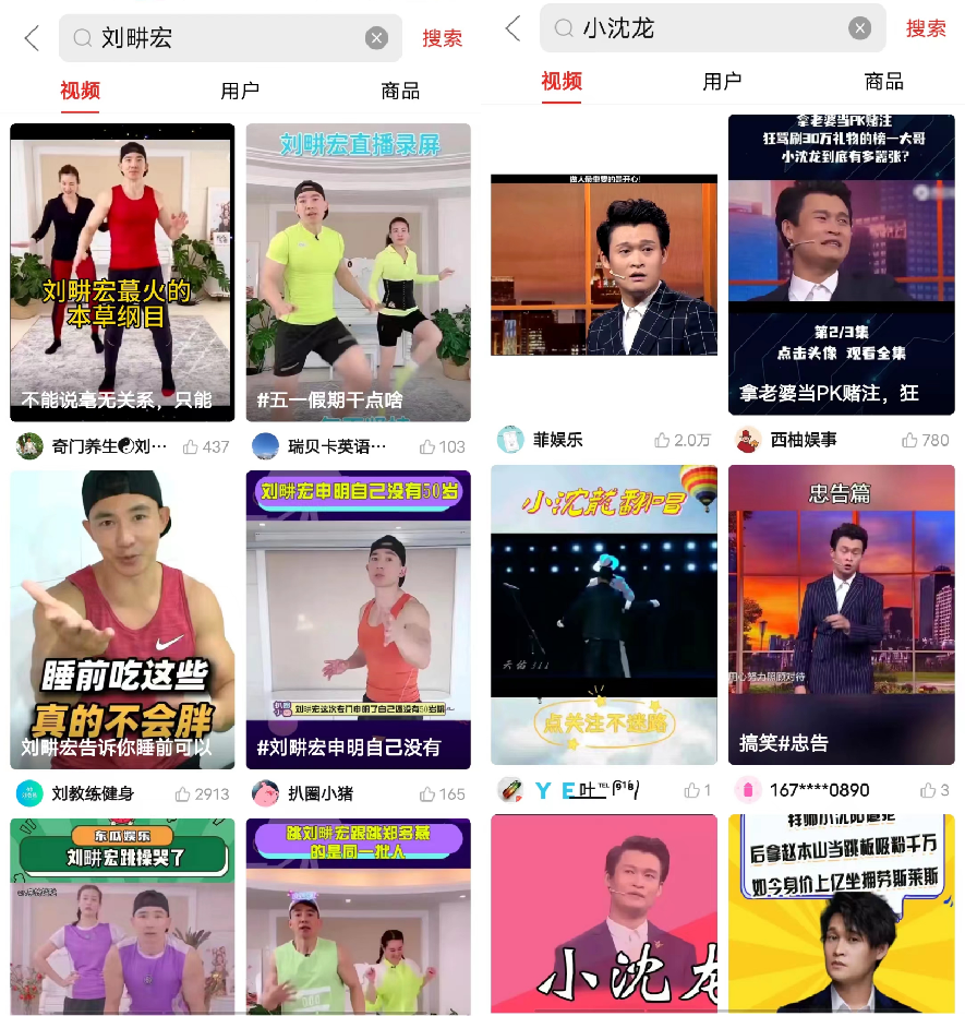 同时,用多多视频检索在抖快“2023年2月粉丝排行榜Top 10”的大博主,一个都检索不到,多多视频并不被大博主们青睐,取而代之的是,“XX娱乐”“XX娱事”“扒圈”之类的纯剪辑、搬运的作品,也导致整个多多视频的内容质量并不高。