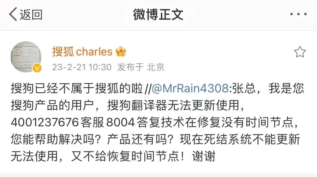 当然,这或许与搜狐已经卖掉搜狗、不再涉及搜索引擎业务有关。就在昨日,张朝阳还在微博上回应网友称“搜狗已经不属于搜狐的啦”。