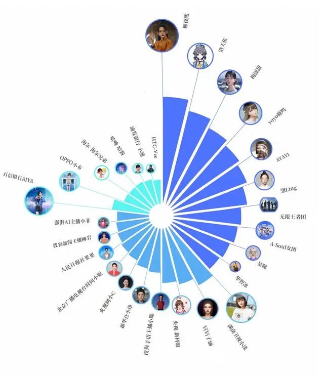 (2021中国虚拟数字人影响力前26位 图源:《中国虚拟数字人影响力指数报告》)