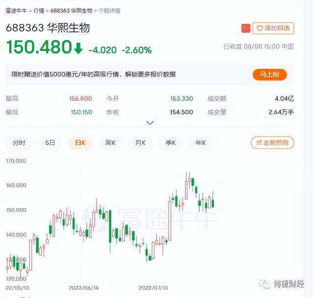 一边是营销的边际效应递减,另一边,华熙生物作为一家生物科技的高新技术企业,低研发的投入势必不足以面对市场竞争。众所周知,最初华熙生物以B端玻尿酸原料为主,但在近年,转型进入热度持续走高的c端市场,不得不加入内卷战场持续提高销售费用投放,高额营销费用也蚕食了净利润,资本市场也对华熙生物做出反应,自去年7月之后,股价一路下行。低研发成本导致的产品质量问题也会成为其转型之后的另一大考验,毕竟研发能力才是医美企业竞争的护城河。