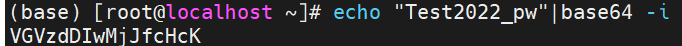 例:echo "Test2022_pw"|base64 -i