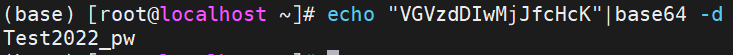 如:dbpass=$(echo "VGVzdDIwMjJfcHcK"|base64 -d)