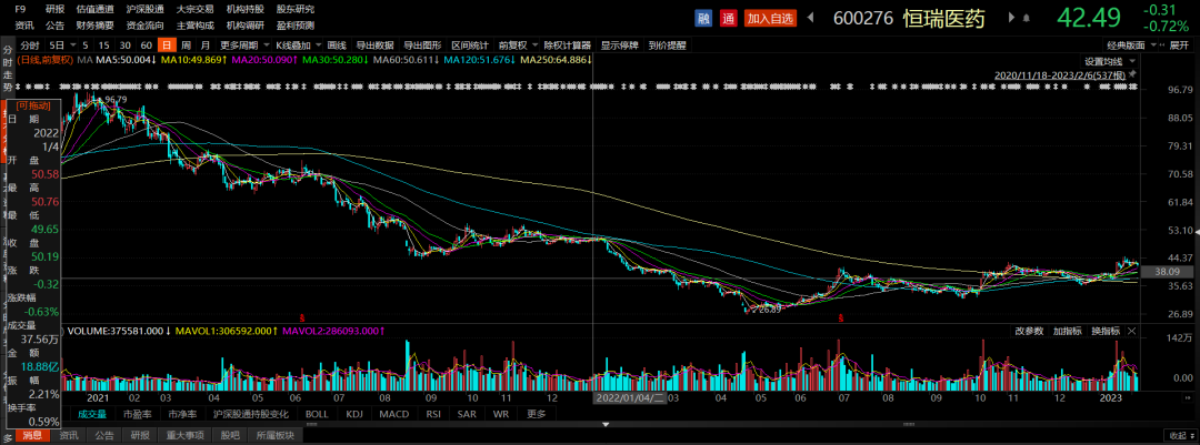 恒瑞医药股价较高位大幅回调