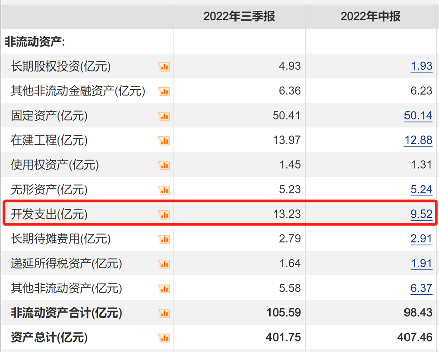 因此,在计算2022年前三季度归母净利润同比变化时,实际上2021年的数据是把所有研发支出费用化,2022年的数据是有庞大的研发支出资本化,显然并不合理。