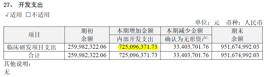 2022年中报附注显示,去年上半年,恒瑞医药的研发支出有7.25亿资本化;