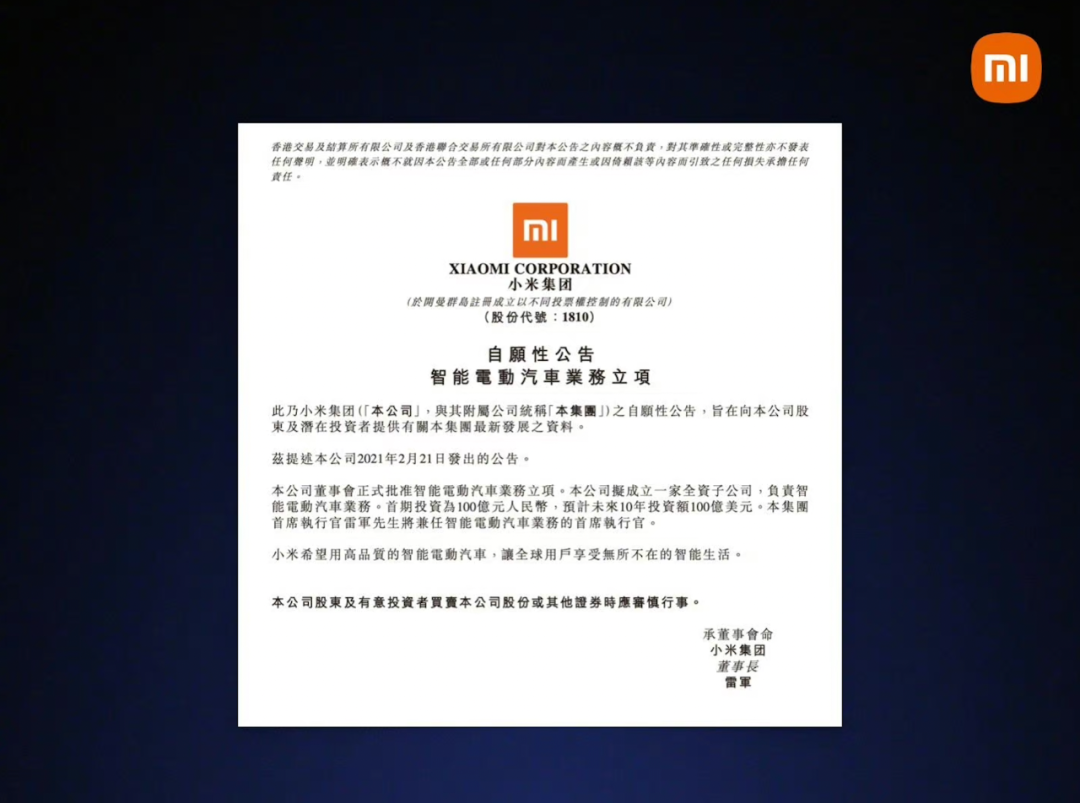 就在公布自动驾驶领域相关进展的前后脚,小米也透露了造车相关的新进展。