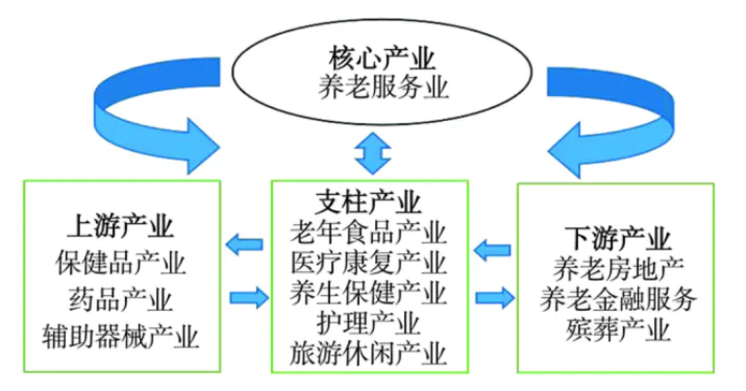 肉眼可见,**“银发经济”养老产业将迎来崛起的新契机,在政策和市场需求的双重利好下,预计2025年养老产业规模将突破12万亿元。**该产业链从产品属性看,主要包含养老服务、养老用品、养老医疗、养老娱乐、养老金融等领域。