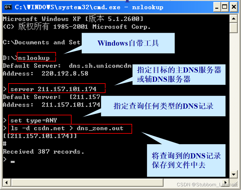 Nslookup命令:用于显示DNS查询信息,诊断和排除DNS故障