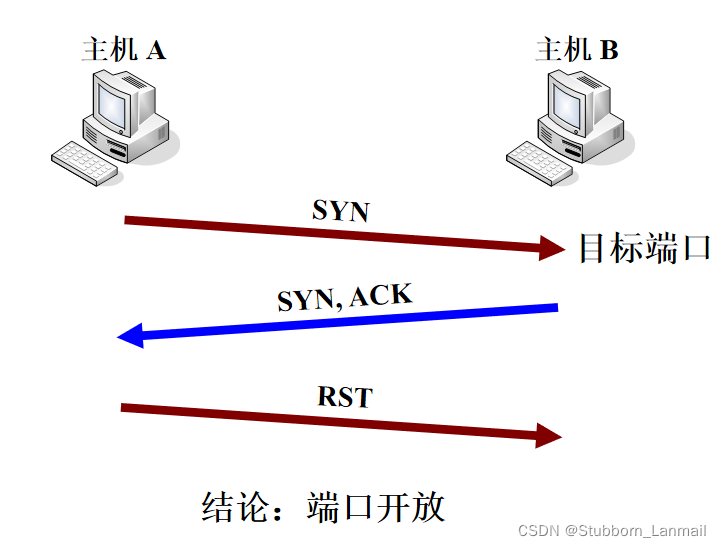- TCP全连接扫描:通过与端口建立完整的TCP连接,根据连接建立的成败推断端口的工作状态。