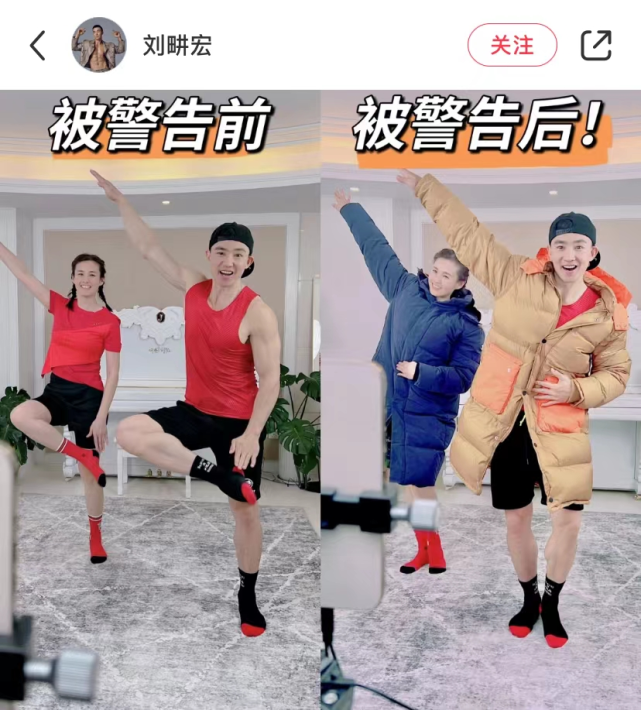 二人的直播之旅,并非一帆风顺。刘畊宏因腋毛茂盛被平台警告,之后不得已剃掉腋毛;因穿着紧身衣胸肌明显,被官方检测为“哺乳期擦边”,刘畊宏和妻子只得穿上羽绒服,继续在直播间做着各种运动量极大的健身动作。