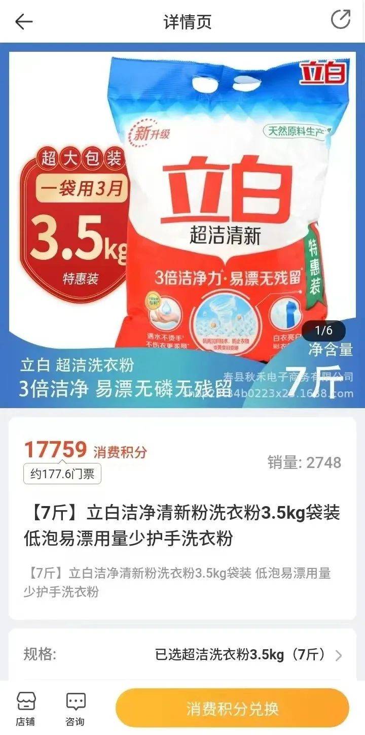 半年多时间内,婆婆的积分只够兑换过一次7斤洗衣粉。