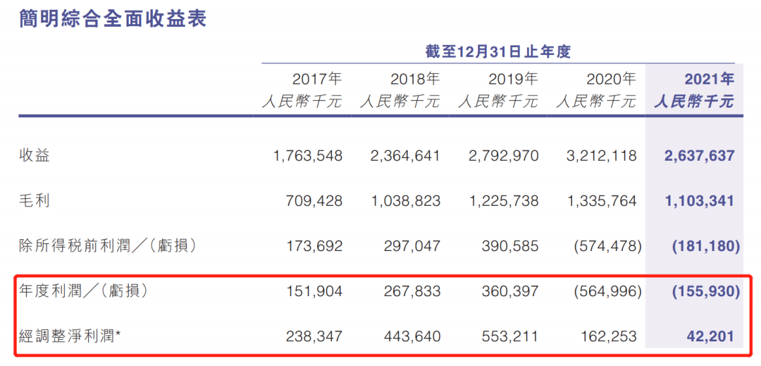 财报数据显示,2019年至2021年,公司的年度净亏损分别为3.6亿元、5.65亿元和1.56亿元,其中,2021年的亏损较前两年虽有收窄,但持续亏损的局面并未改变。而在经调整的净利润上,2019年至2021年分别为5.53亿、1.62亿和0.42亿,不仅净利润逐年收缩,业绩增幅也在持续下滑。