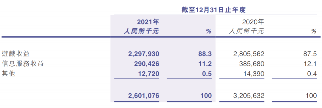 背后的关键在于,公司对游戏发行过于依赖。财报数据显示,2021年,公司的游戏收益占比高达88.3%,较上年同期仍略有提升,其中大部分收益来自于公司发行的游戏。