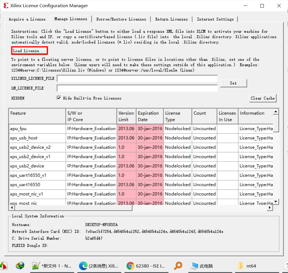 第一次打开ISE环境,因为没有进行注册,会弹出License管理工具,点击