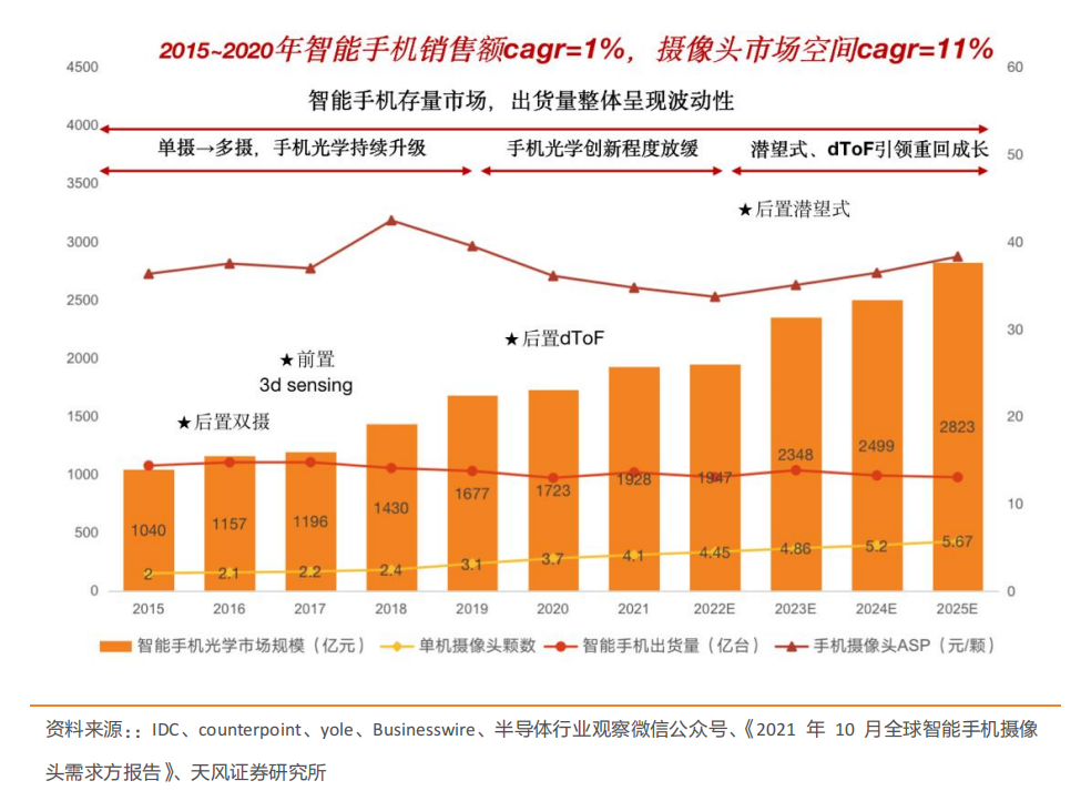 曾经,手机出货量狂奔,以及搭载的摄像头数量增加、方案升级,让光学厂商赚得盆满钵满。