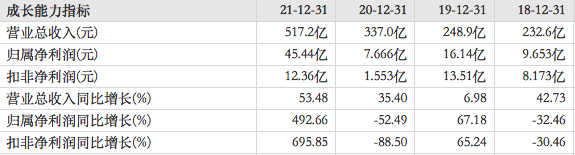 斯尔邦的并表为东方盛虹带来了丰厚的业绩增量。财报显示,2021年,东方盛虹营收517.22亿元,同比增加53.48%;归属于上市公司股东的净利润45.44亿元,同比增加492.66%。