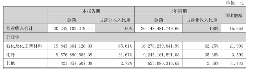 钛媒体APP注意到,自收购斯尔邦后,石化及化工新材料业务就取代原有的化纤业务,成为公司的营收支柱。今年上半年,该业务营收占比达65.61%。不过,这项主业的毛利率仅为12.43%,同比下跌7.52%。