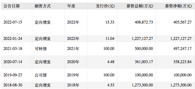 不可否认的是,东方盛虹一直通过各种方式来解资金之渴。Wind数据显示,公司在2018年-2022年7月通过公司债、定增、可转债等多种方式累计募得资金386.14亿元,是过去4年公司归属净利润总和的4.89倍。
