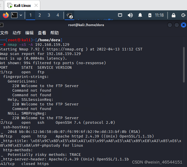 3.另一台主机,对蜜罐进行扫描,可用扫描软件