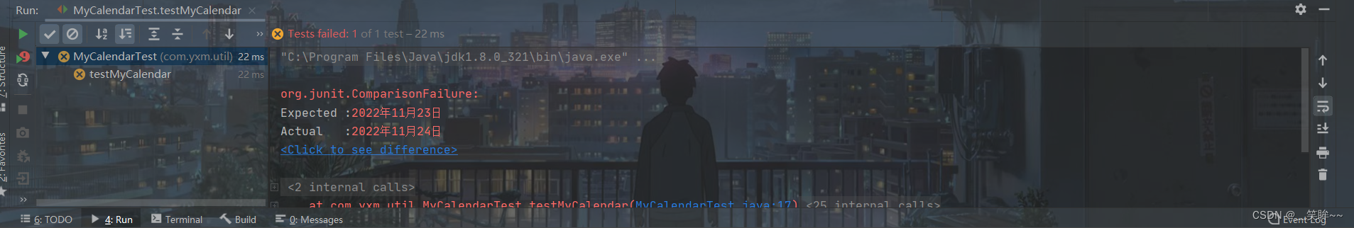 Assert.assertEquals("2022年11月23日",myCalendar.outCalendar());//断言操作
