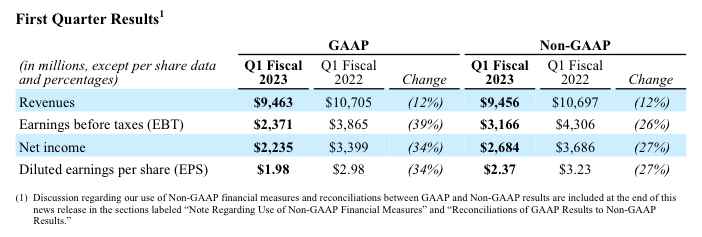 2023年2月3日凌晨,高通披露了2023财年Q1财务报告,营收94.63亿美元,同比下跌12%;净利润22.35亿美元,同比下跌34%。