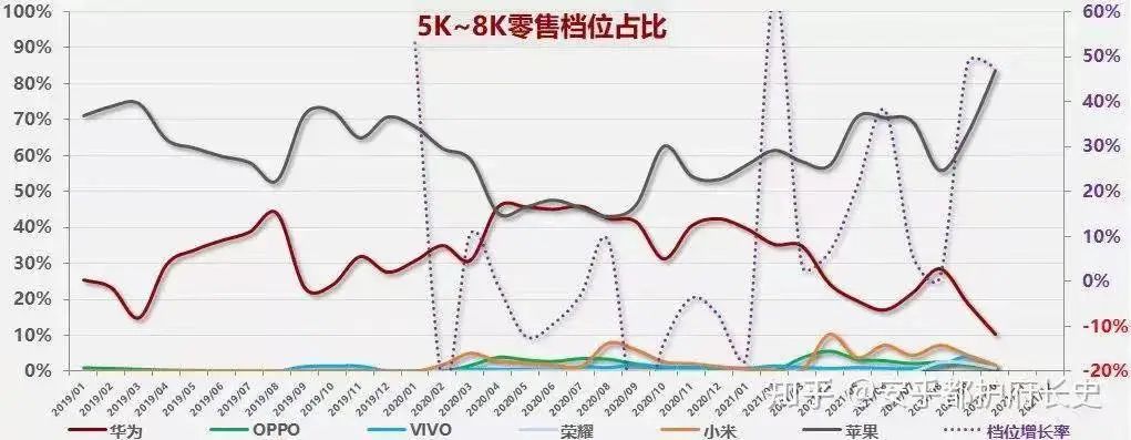 (2019-2021 中国5k-8k手机零售档位占比 图源:知乎安乎都护府长史)