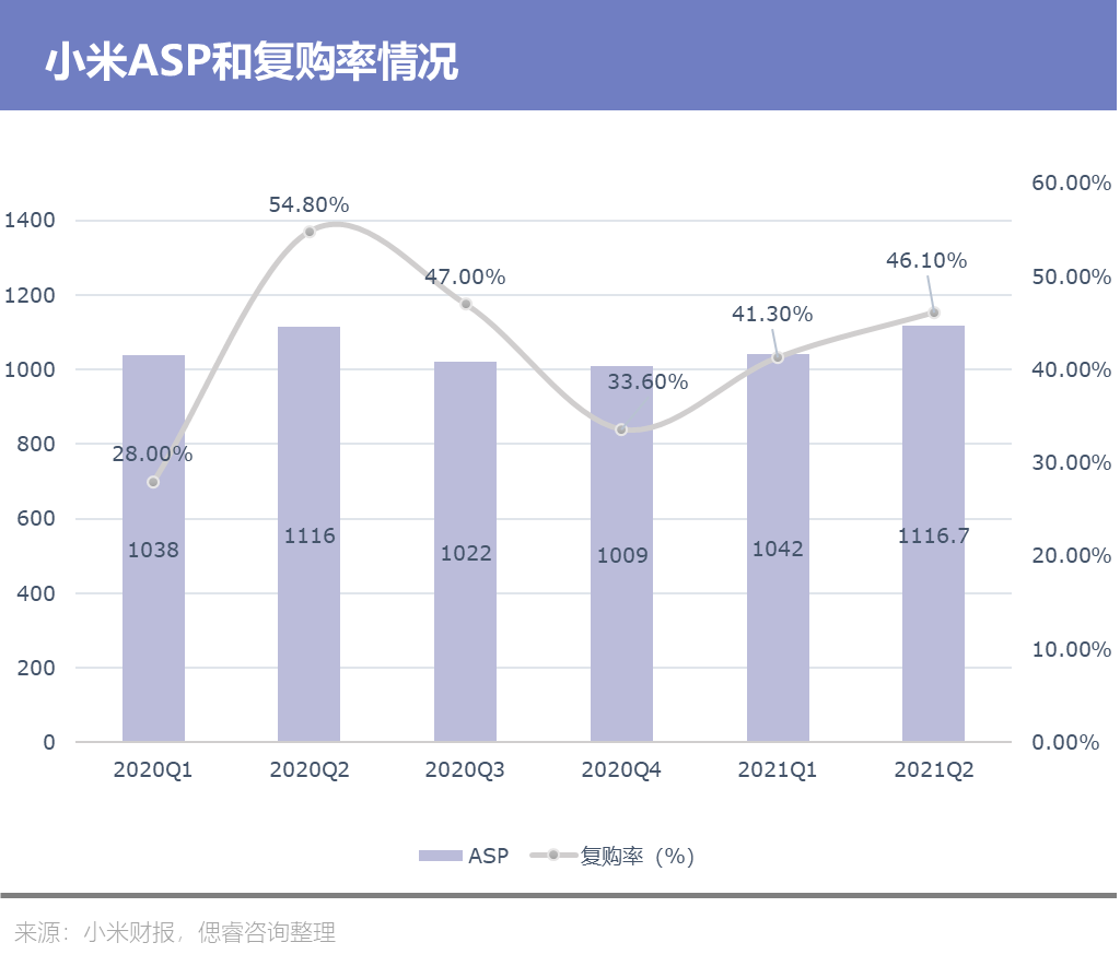 据光子星球统计,最近两年的二季度是小米ASP的峰值,这与复购率的峰值完全重合,当复购率提升的时候,ASP提升了——说明提升ASP不能靠新用户,只能依靠米粉。而复购率一年比一年低,米粉被高价压制住了。