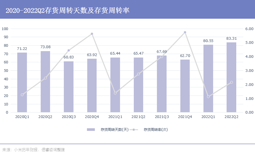 小米在财报电话会上表示:这个季度“历史遗留问题”比较多——二季度小米面临较大的库存压力,制成品库存达到324.9亿元,同比增长35.7%,减值拨备23.5亿元,同比增长76.6%。